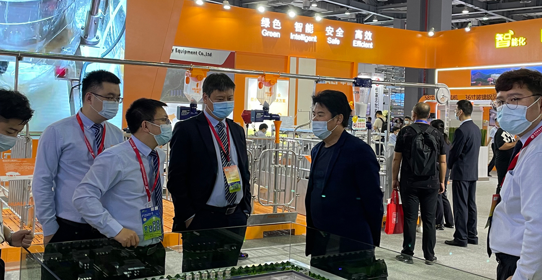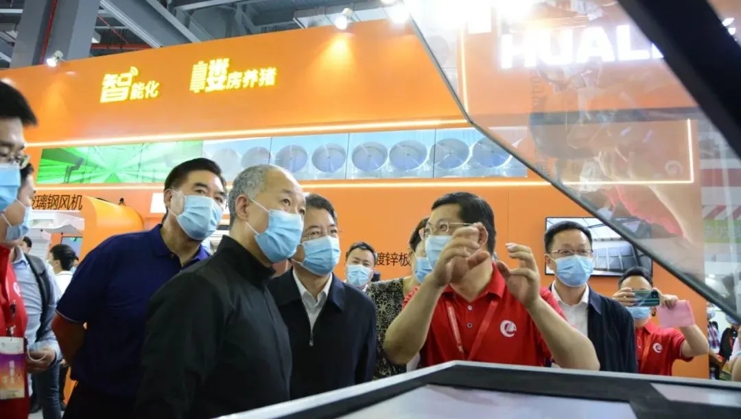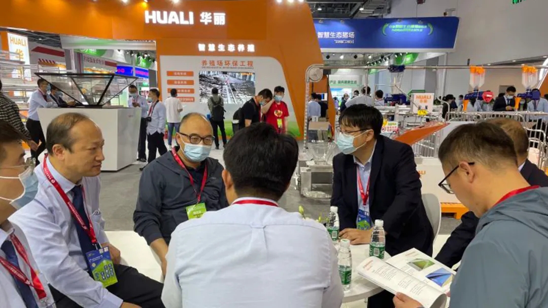 HUALI booth located in the group/large enterprise pavilion, with "intelligent cultivation" as the theme, exhibits range from the livestock and poultry farms planning and design to the production operation of each link, the comprehensive environmental control system, field system, precise feeding, breeding, poultry cage management system building, environmental protection system and other modern farming equipment and the overall solution, attracts many customers to view and communication.